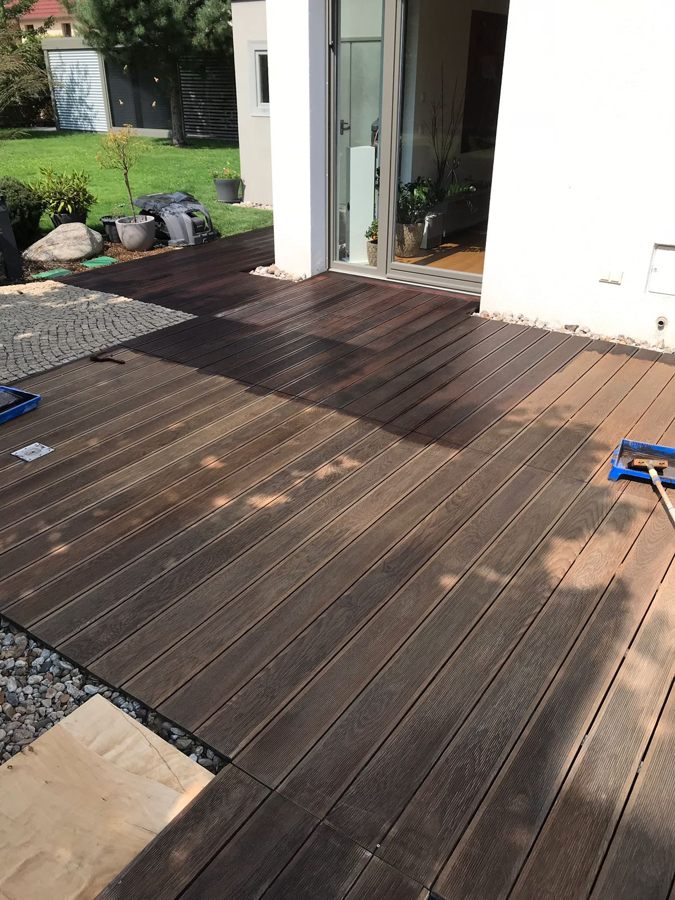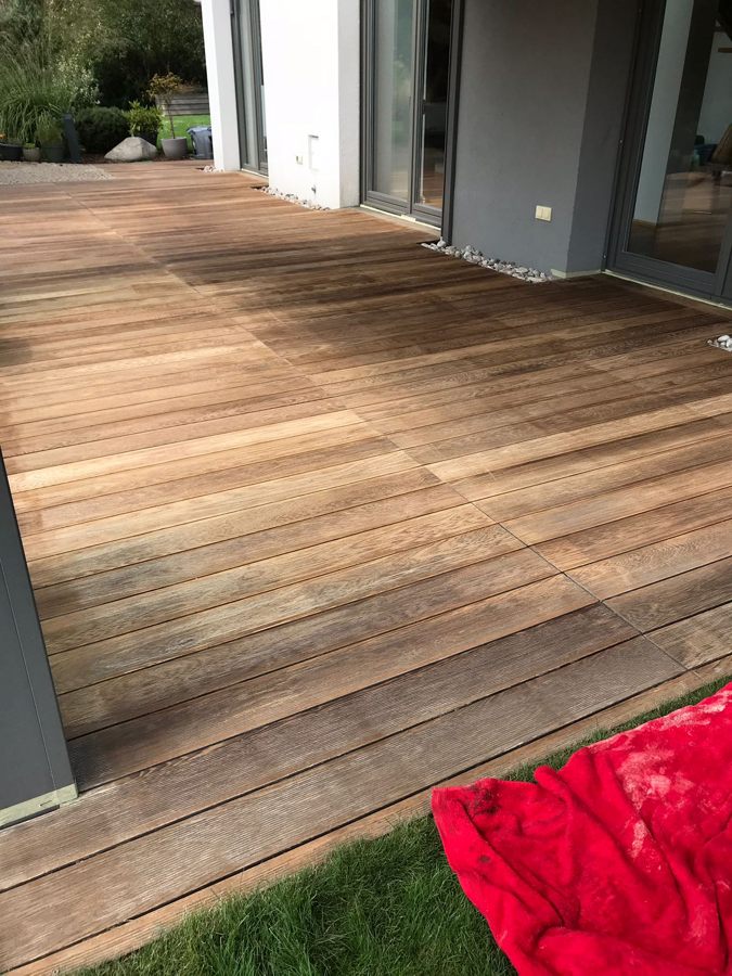 Reinigung einer Holz-Terrasse aus Cumaru-Holz